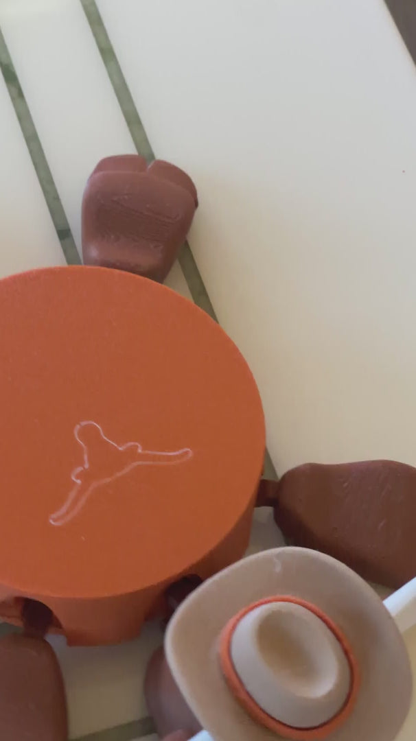 Meet the coaster that turns every sip into a little comedy show. This 3D-printed PLA drink coaster is inspired with Bevo vibes and designed like a snoozing Longhorn with a full head, arms, legs, and tail tucked in like he’s living his best lazy afternoon.